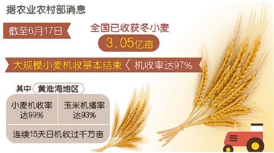 全国已收获冬小麦3.05亿亩 大规模小麦机收基本结束
